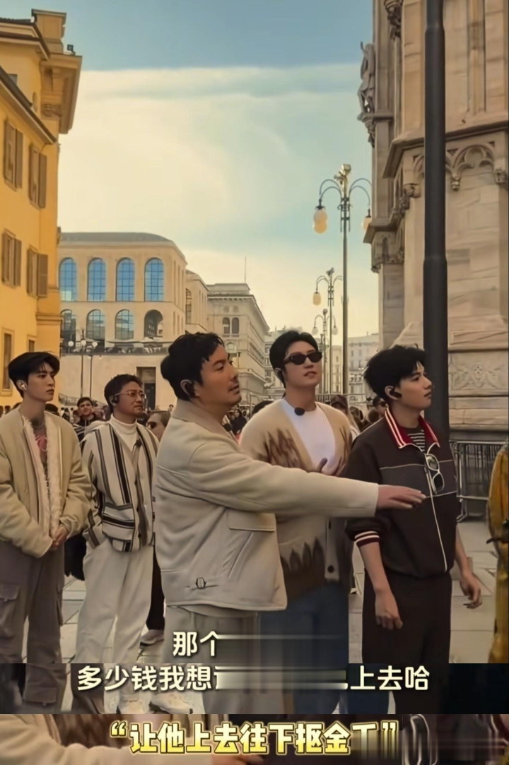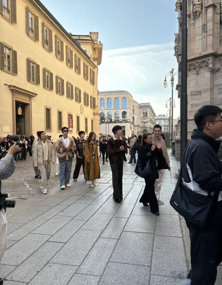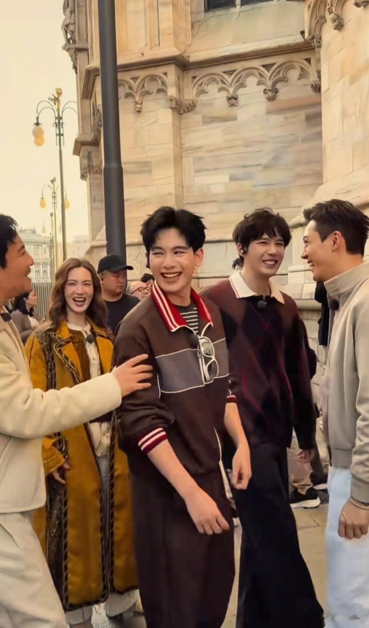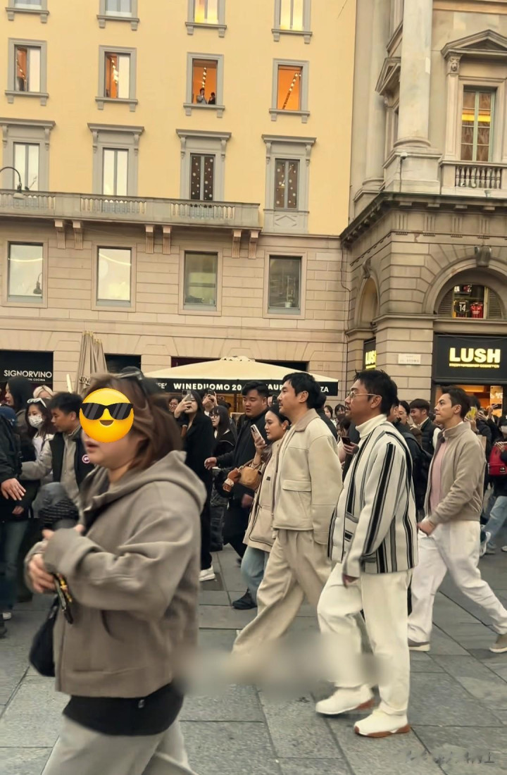 意大利街头人头攒动,其中大部分是前来围观明星的华人,陈伟霆一头利落的短发,五官立体,身着浅棕针织夹克衫搭配白色休闲裤,他单手插兜,大步流星,有霸总英气,又有松弛感,非常拉风;这与身后贾冰和沈腾两位大叔的油腻画风,很是冲突、滑稽。